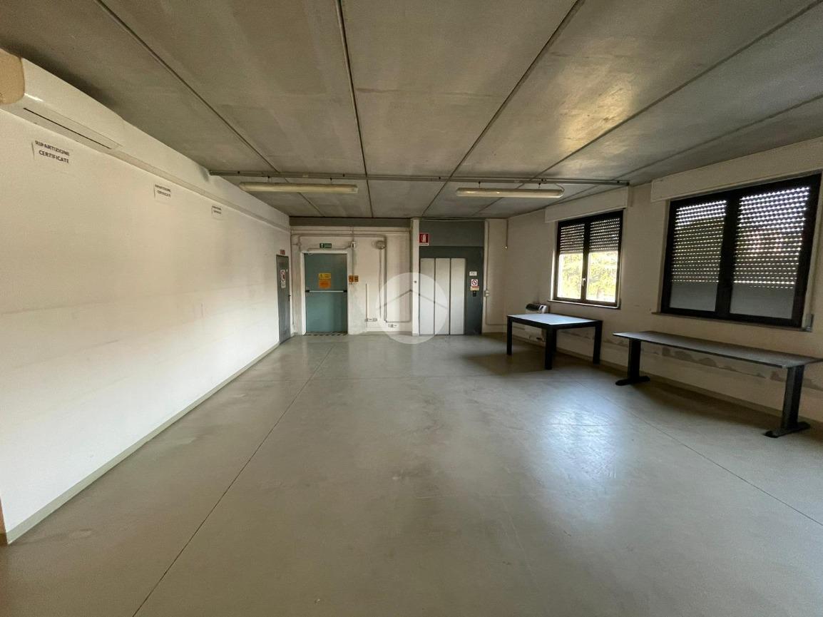 piano primo di 390 mq accessibile da scale interne ed esterne e da montacarichi, di altezza 3 metri ad uso deposito e uffici con pareti removibili.