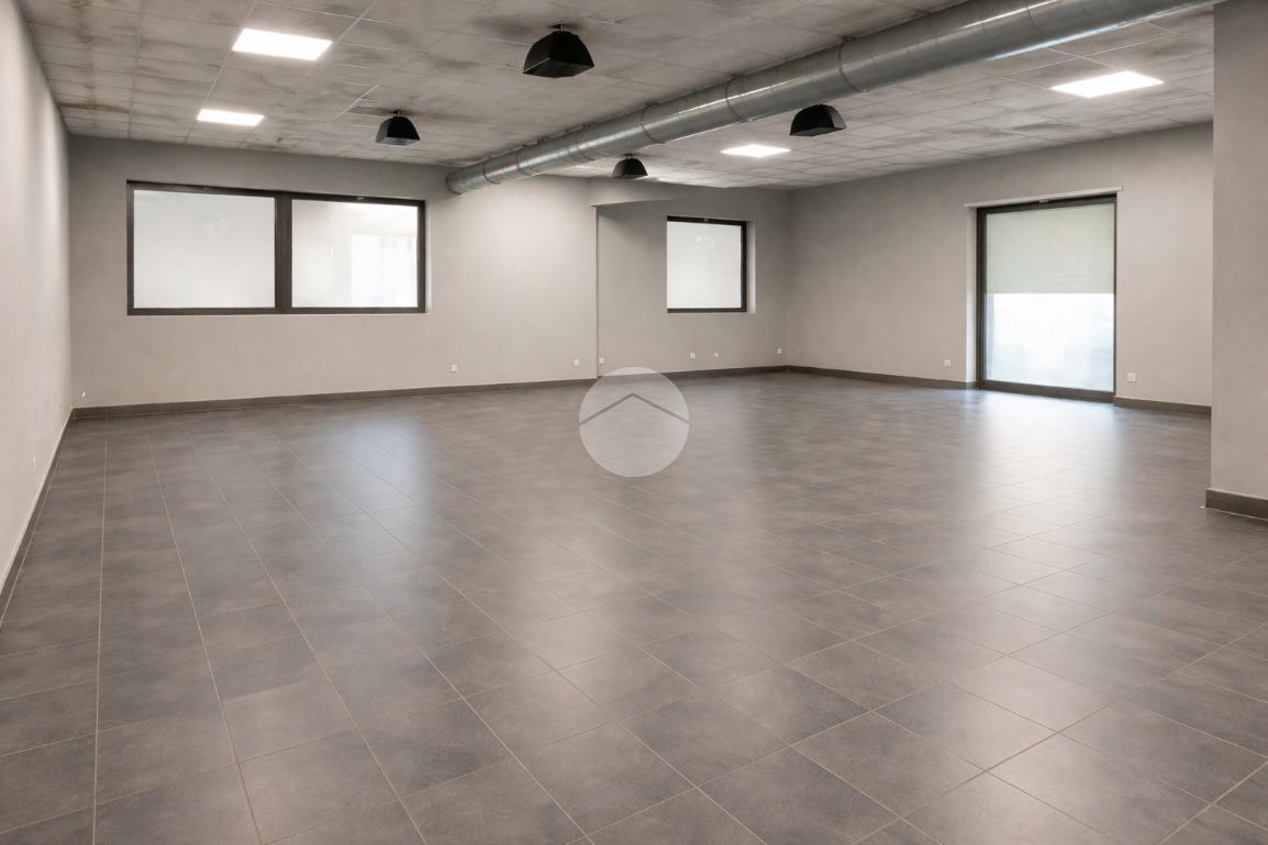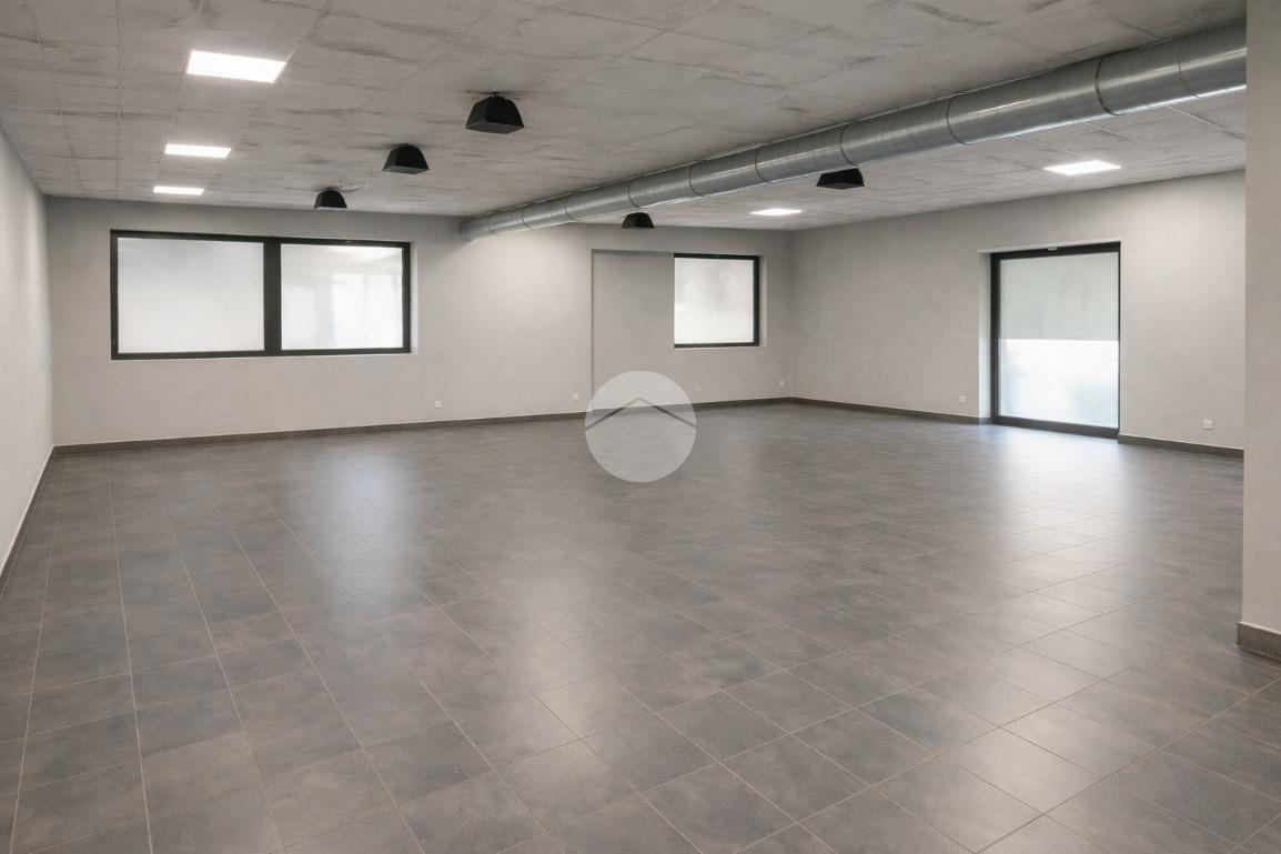 Il locale si dispone in ca. 350mq complessivi di cui 175mq disposti in unico salone openspace e la restante metratura divisa tra reception di ingresso e spogliatoi uomo/donna con docce.