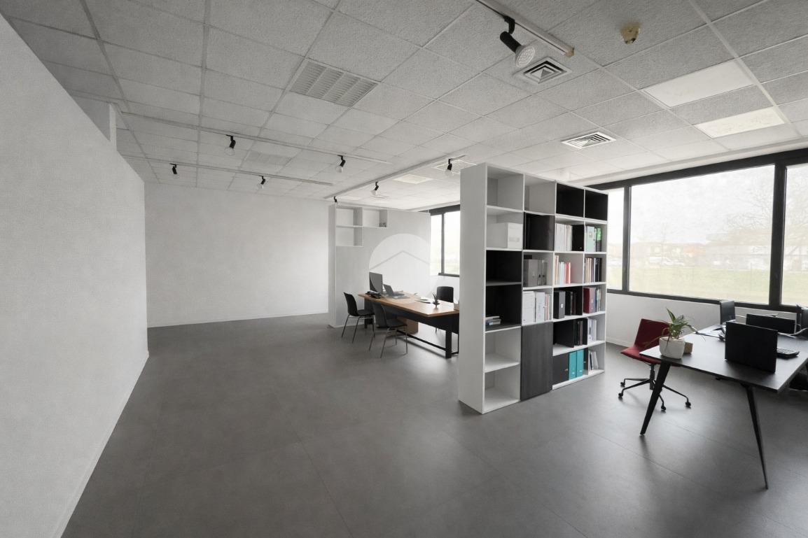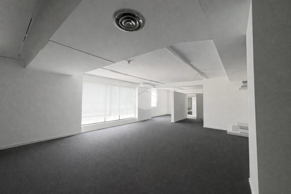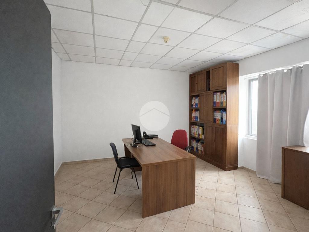 Piano terra: area commerciale con ampie vetrine fronte strada e piccola porzione ad uso ufficio.