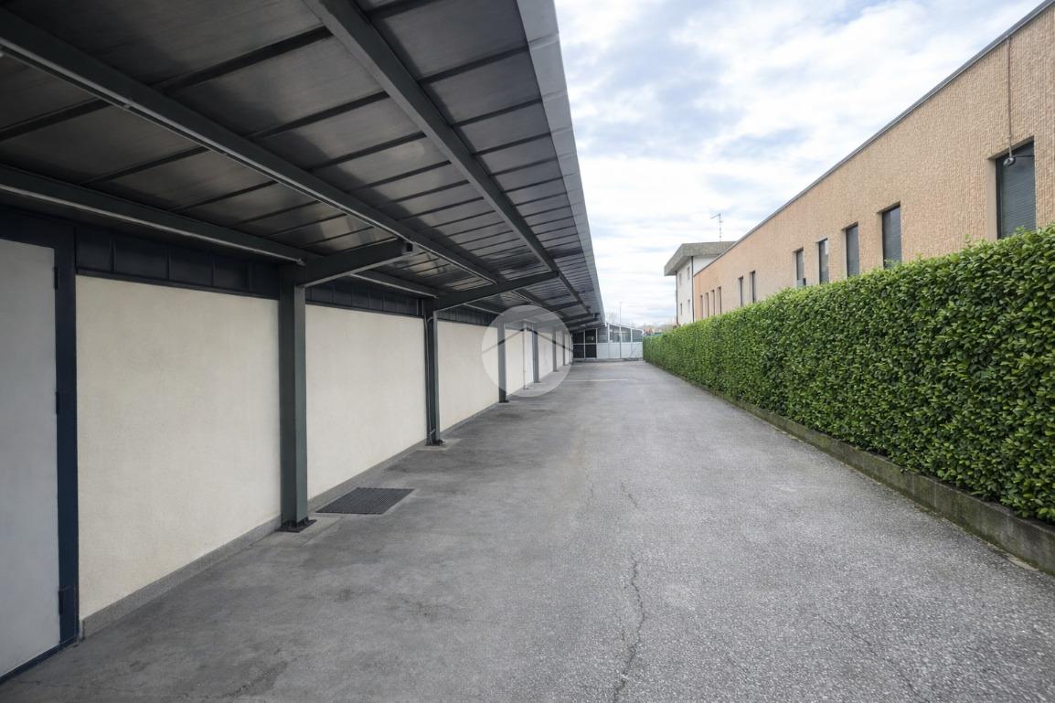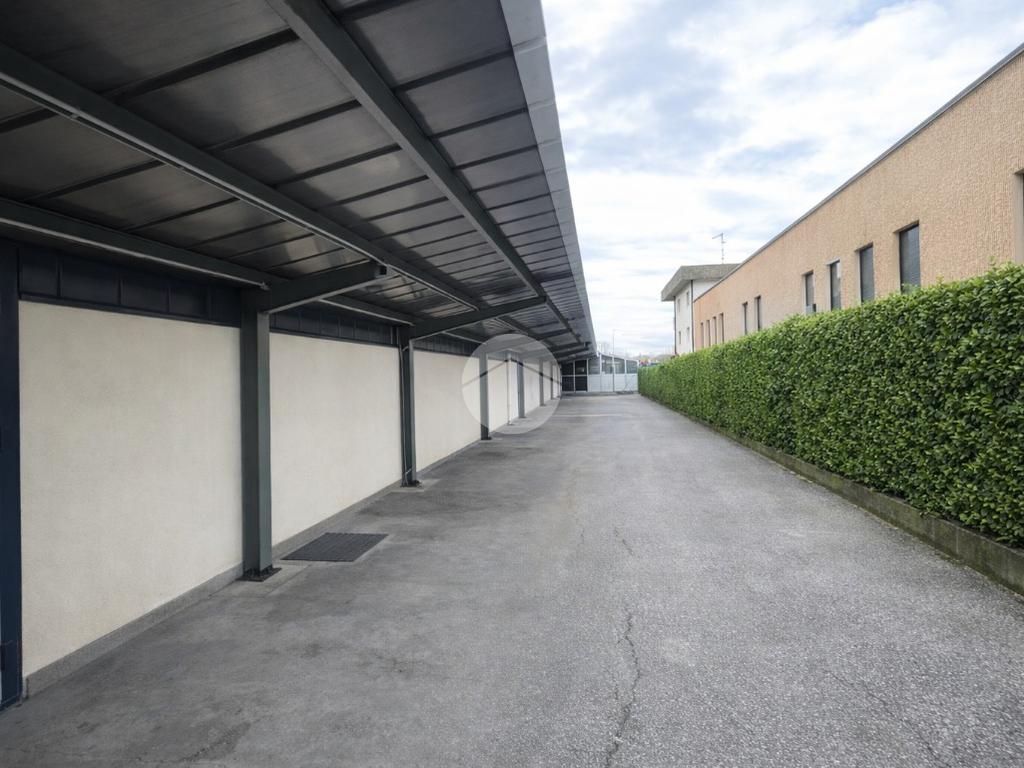 Area esterna di totali 1450mq di cui 490mq a verde, ca. 100mq coperti da tettoia e 860mq di piazzale asfaltato.