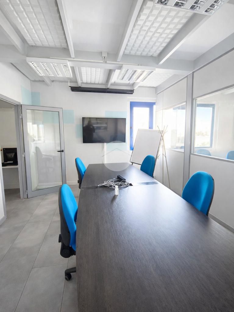 La soluzione è composta da 5 ambienti separati, un grande open space ideale per attività operative o coworking, due bagni e uno spogliatoio con doccia.